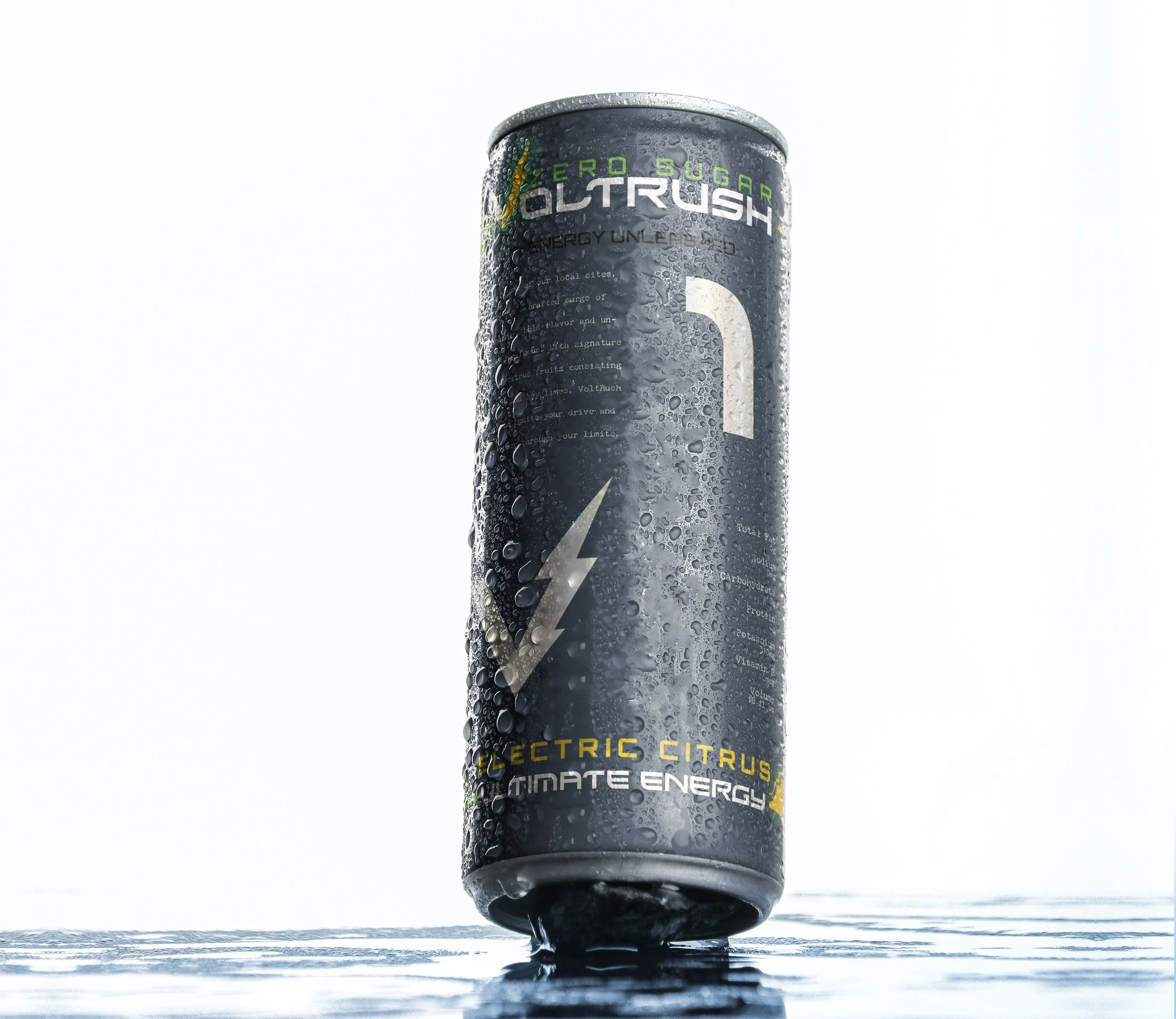 Original package design for a self-created energy drink product that is more visually influenced by vintage sci-fi elements.