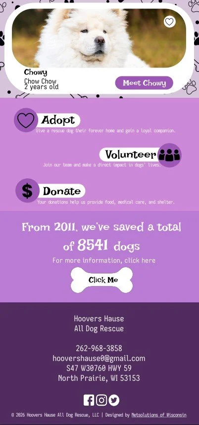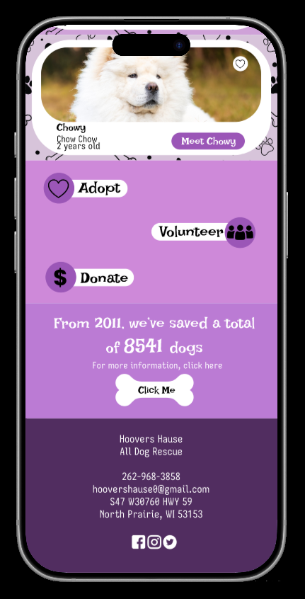 A non-profit campaign that was used for a local organization to raise awareness for a cause. I made a card and a landing page campaign for Hoovers Hause All Dog and Rescue.